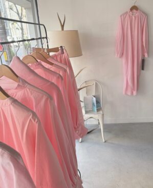 後染めのプリマベーラ・ピンクのアイテムが並びました。