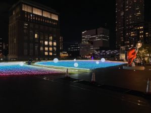 夜のライトアップが幻想的で。。。大きな猫ちゃんは
